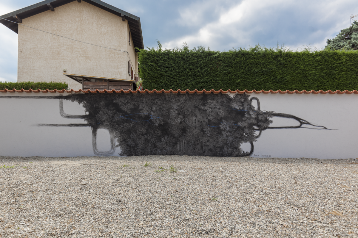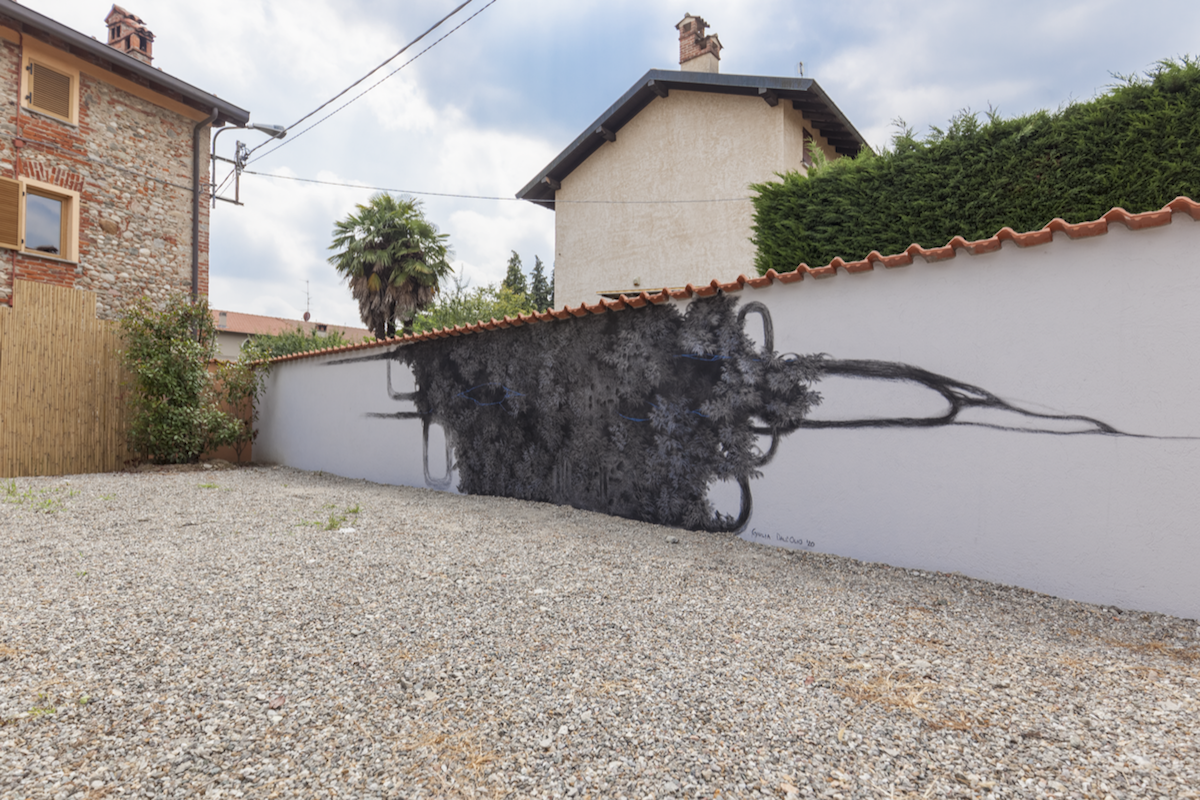 Giulia Dall'Olio, g 19 ][ 195 d, 2020. Carboncino e acrilico su muro, 160x800 cm. Courtesy l'artista e Studio G7, Bologna.